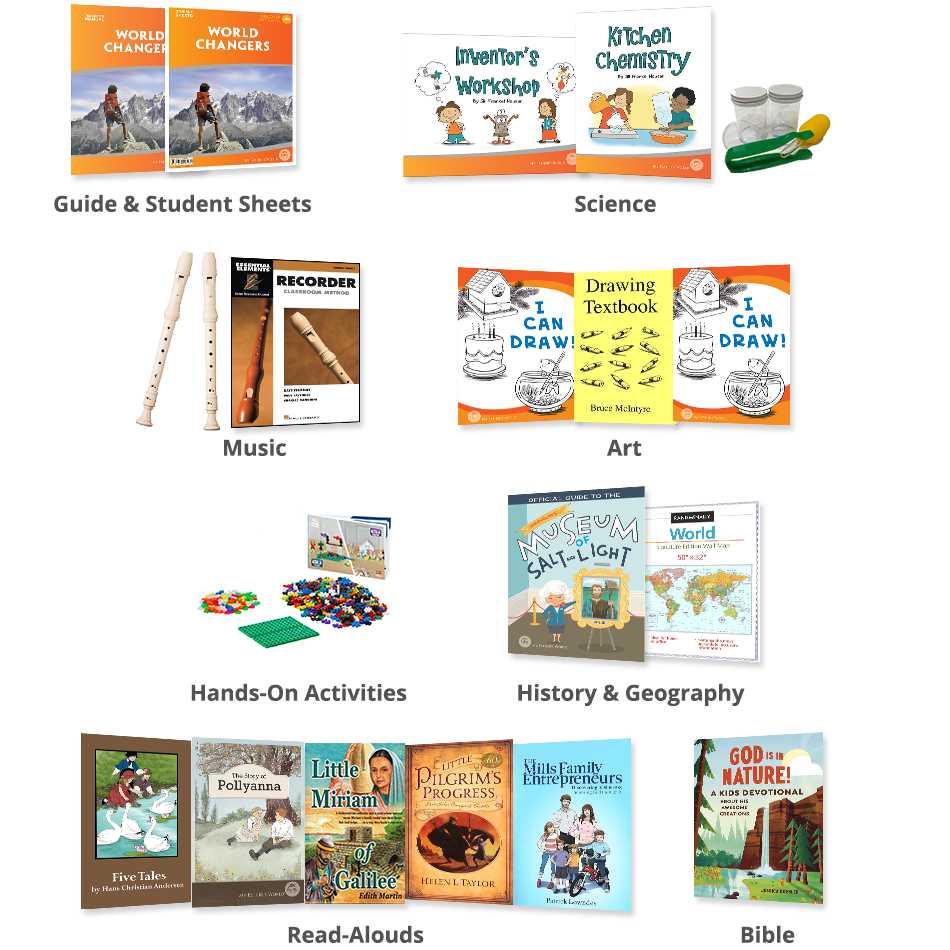 We are enjoying World Changers immensely. It's a delightful sweep through history, focusing on some very interesting and inspiring people, perfect for 3rd graders. It's so helpful to have “pegs” for kids to attach pieces of information to as they continue to study history more in depth, and World Changers is definitely giving some great memory pegs. We really like the history stories in the teacher's manual — my son listens well, understands, is interested, and can narrate. The science is a lot of fun and age-appropriate. We truly like everything about this program! Thank you for this delightful program!